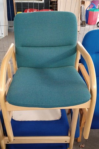 Waiting room chair- turquoise fabric wood framing 10