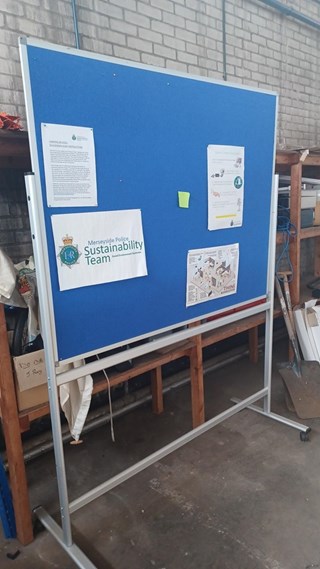 Large blue notice board (metal stand) 32