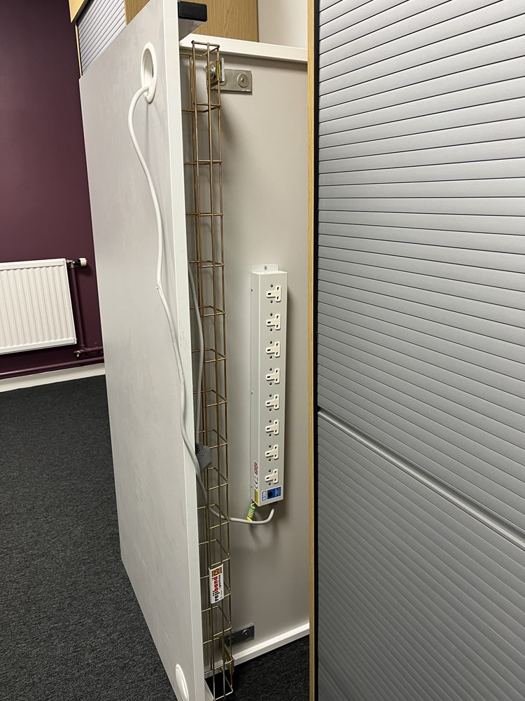 White desk with 8 power points & cable tray 89